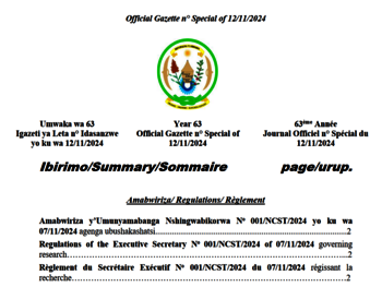 Regulations of the Executive Secretary No 001/NCST/2024 of 07/11/2024 governing research